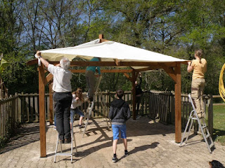 Vorige week installeerden we een nieuwe pergola aan het zwembad. Volgens het montageplan zouden 2 personen volstaan… wij waren blij dat er heel wat helpende handen klaar stonden! Een dikke merci aan zusje, schoonbroer en al wie deze week een handje toestak!